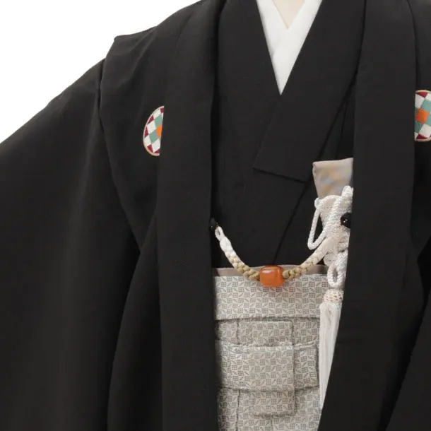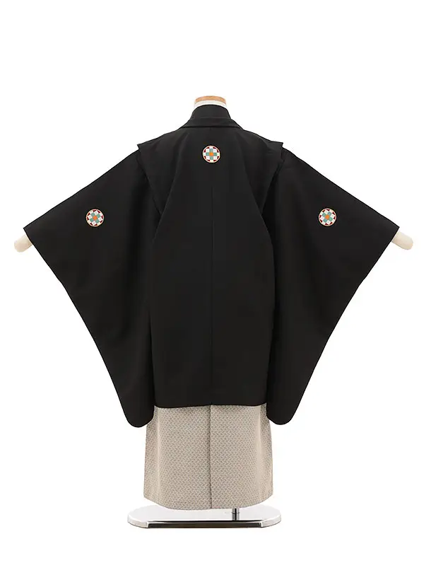 かんたん七五三(5歳男袴)X505 黒紋付×ベージュグレー
