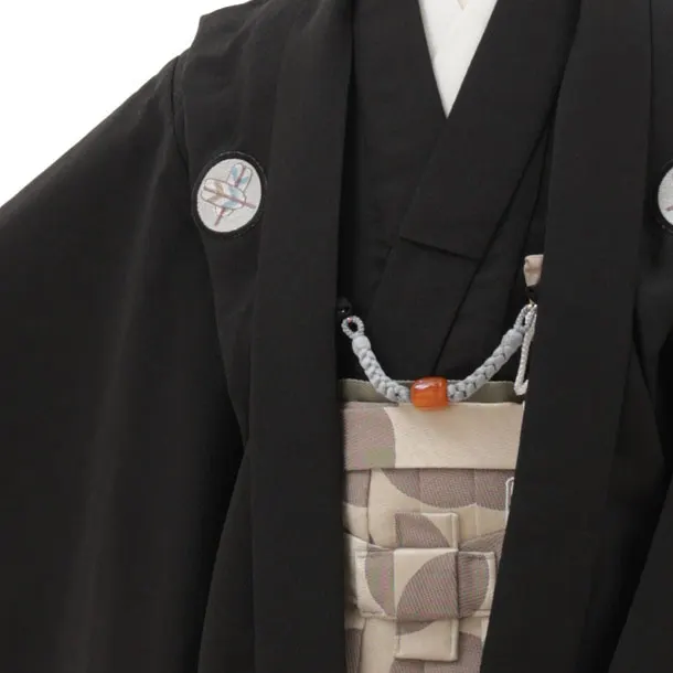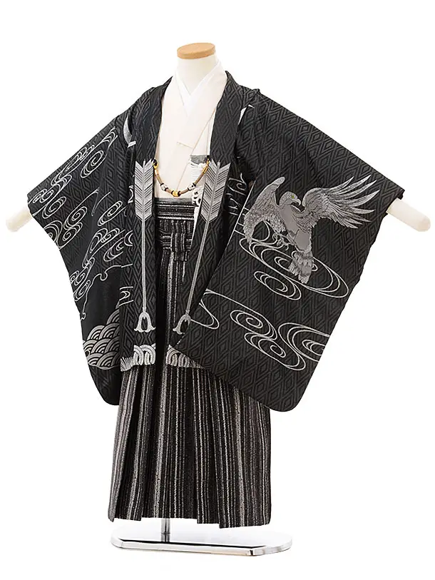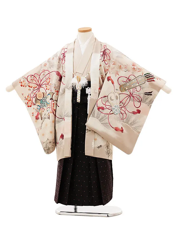かんたん七五三(5歳男袴)X507 黒紋付×ベージュドット