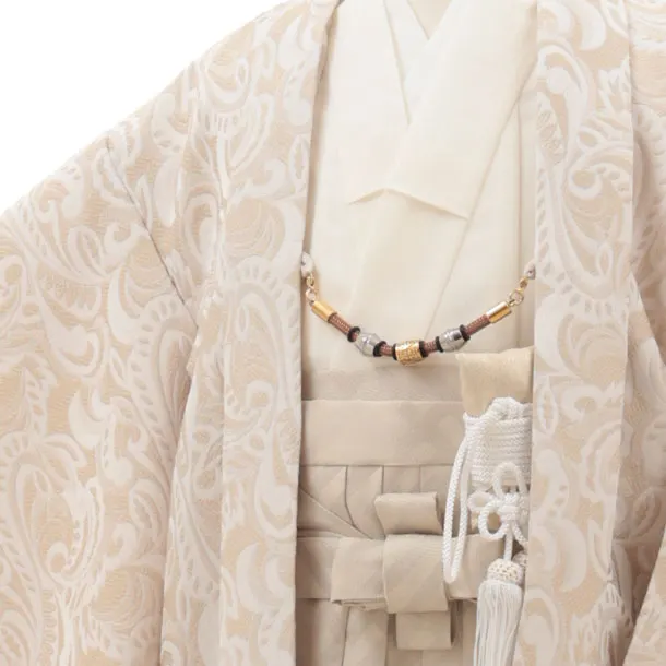 かんたん七五三(5歳男袴)X508 ゴールドペイズリー×ベージュ