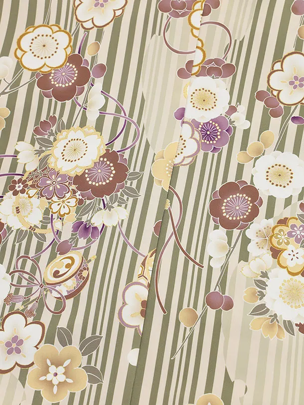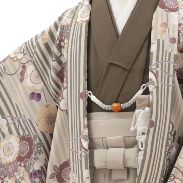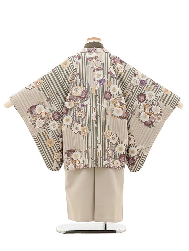 七五三レンタル(5歳男袴)X510 ベージュグリーンストライプ花×ベージュ