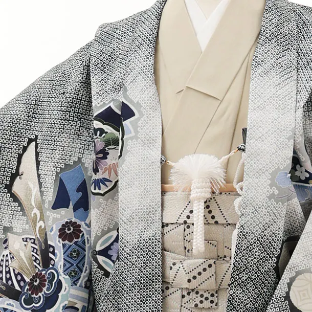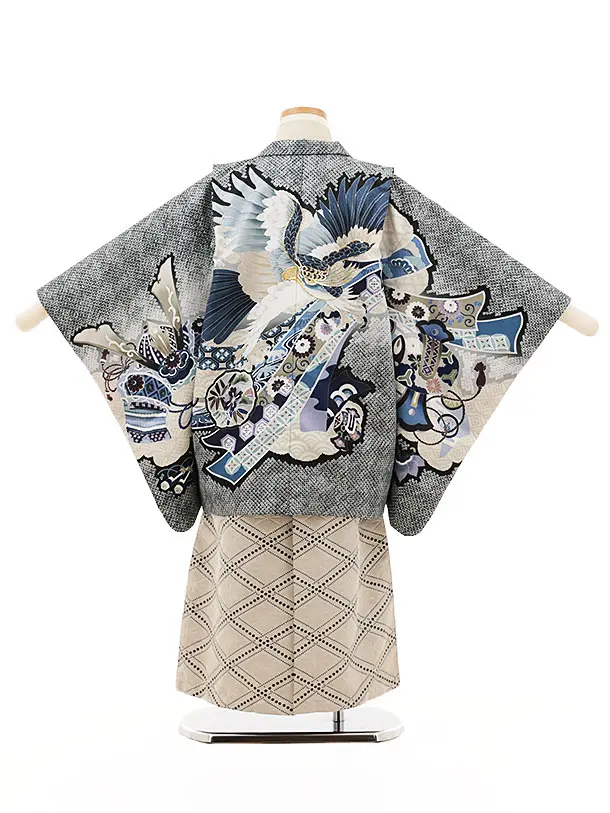 かんたん七五三(5歳男袴)X519 黒束ね熨斗鷹×ベージュ
