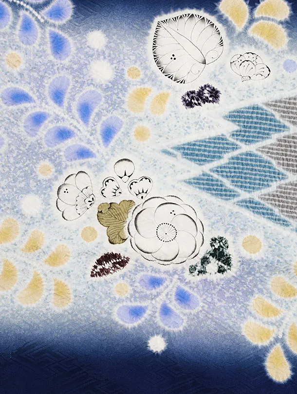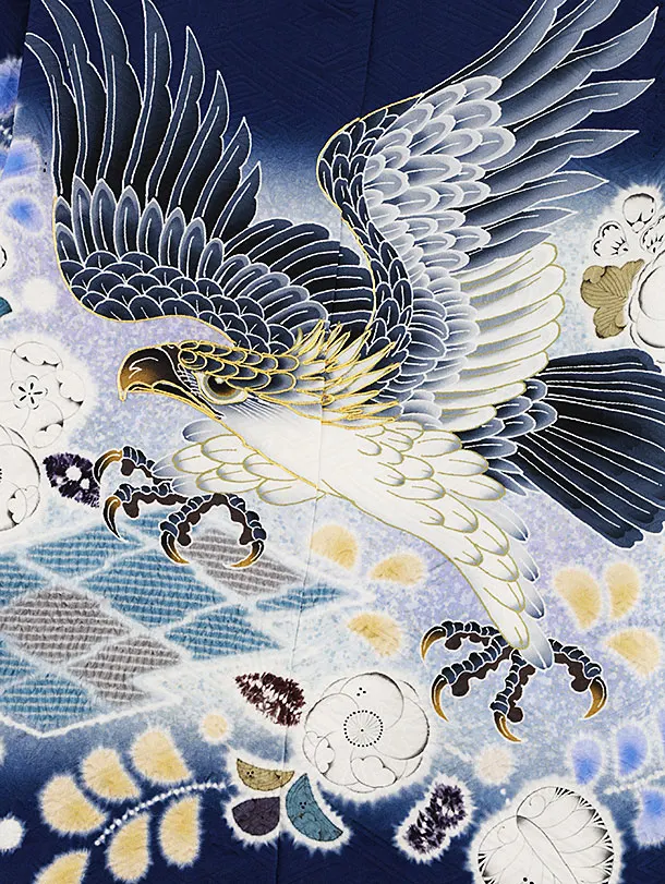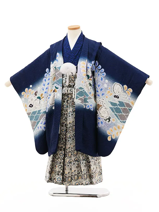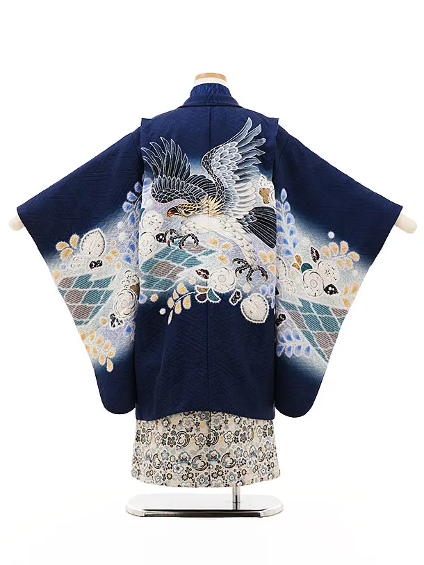 七五三(5歳男袴)X520【正絹】ブルー辻が花鷹×ベージュ梅