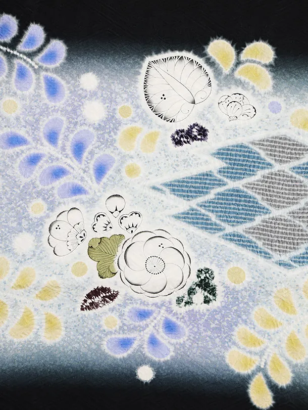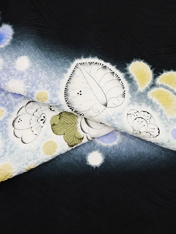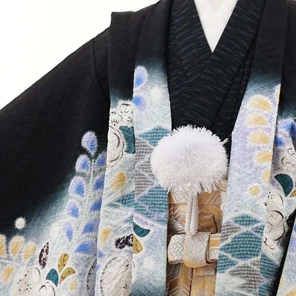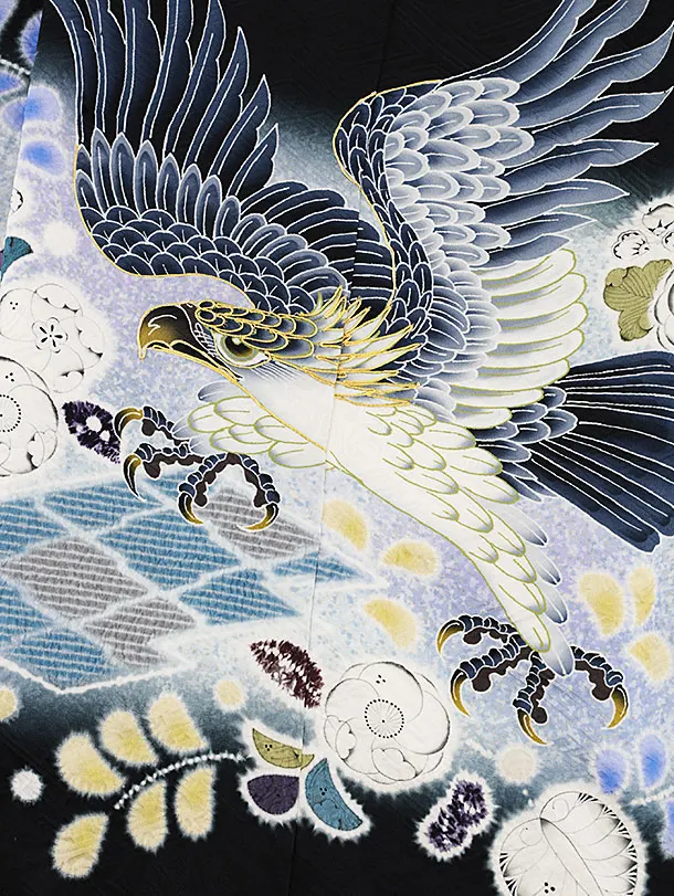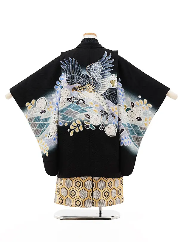 七五三(5歳男袴)X524【正絹】黒地辻が花鷹×金亀甲