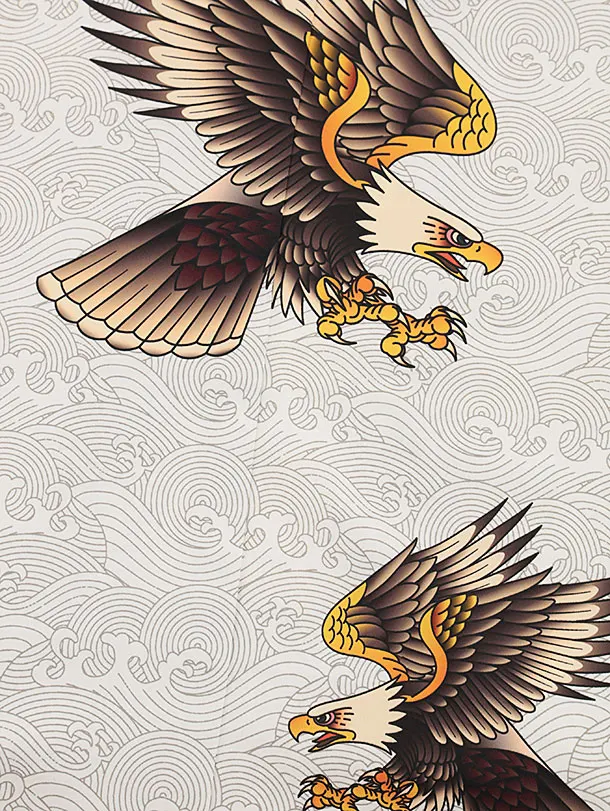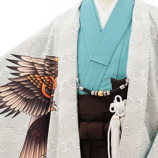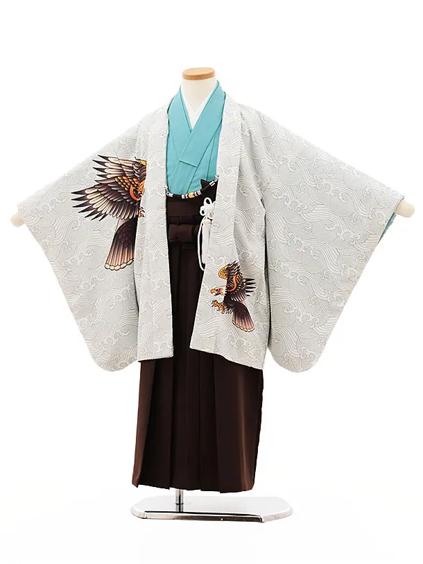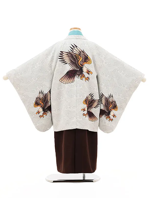 七五三レンタル(5歳男袴)X540 白地 波に鷹×ブラウン