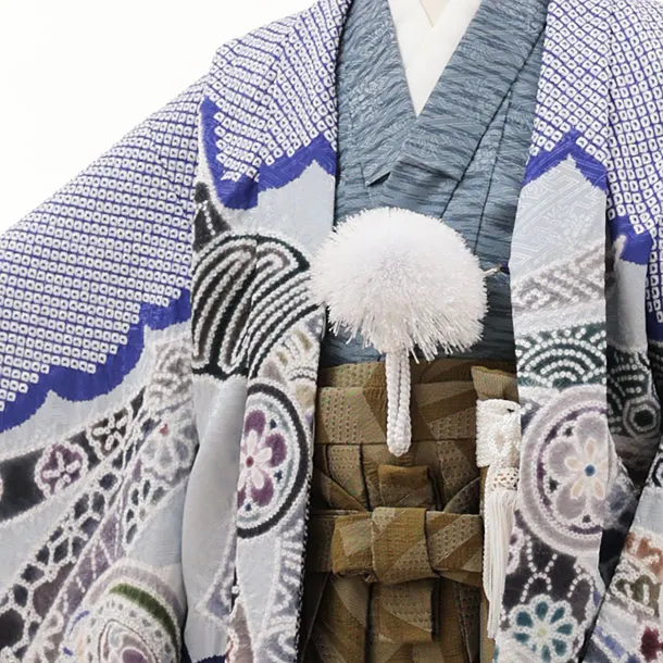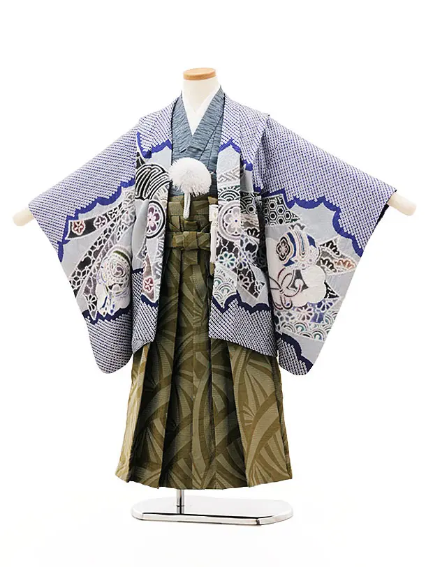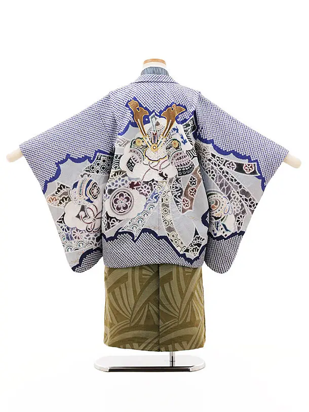 七五三レンタル(5歳男袴)X550 パープル疋田調熨斗兜×カーキ