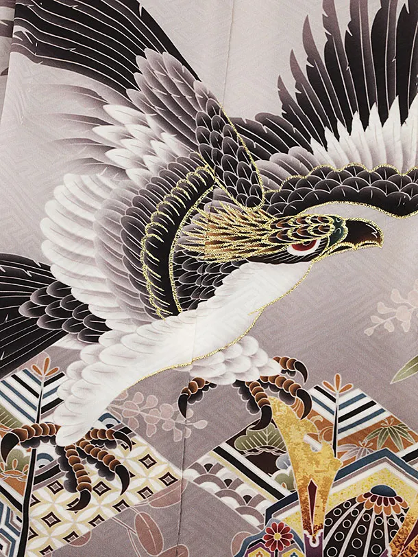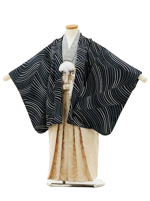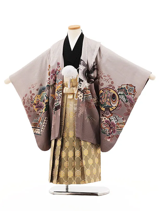 七五三(5歳男袴)X553【正絹】グレージュぼかし鷹×グリーンぼかし