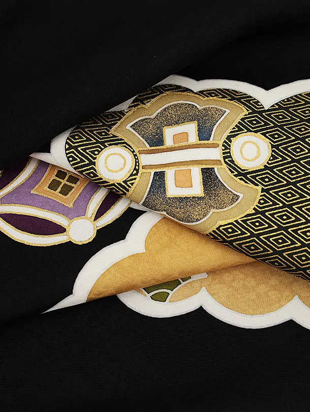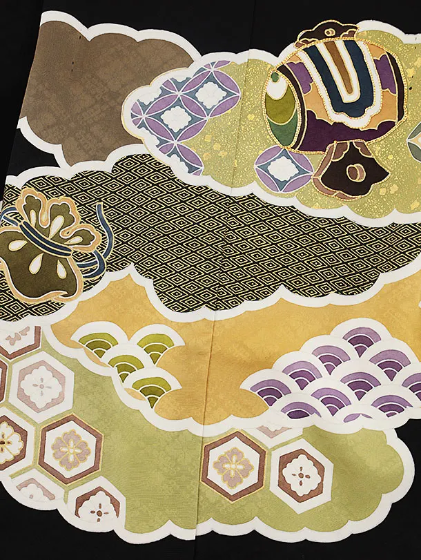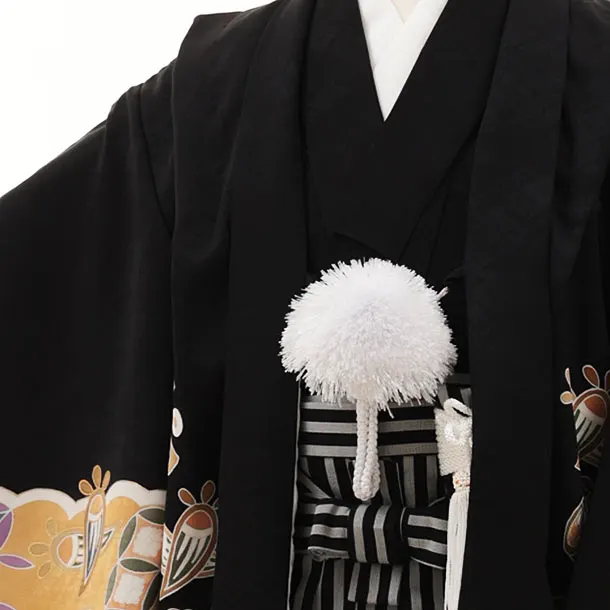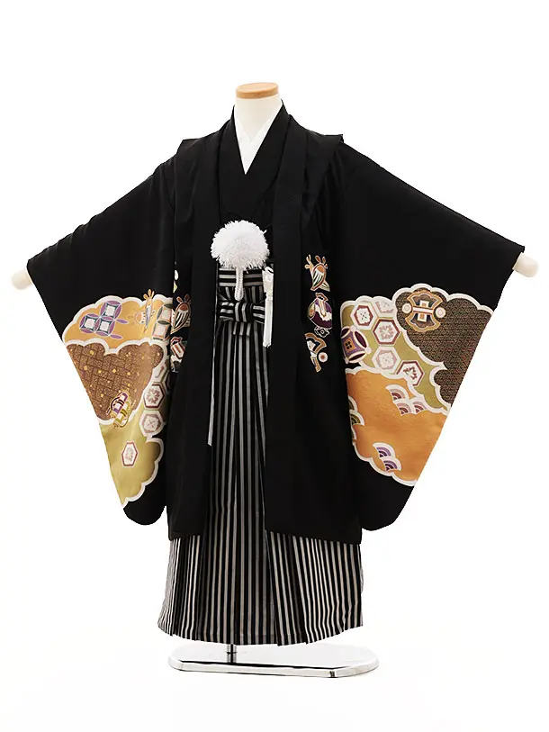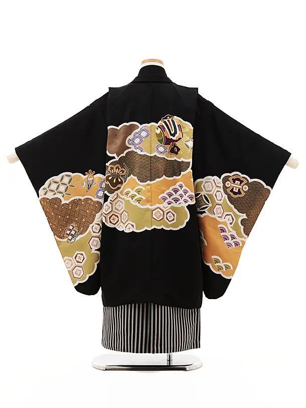 七五三(5歳男袴)X558【高級正絹】黒地雲取り吉祥文様×黒縞