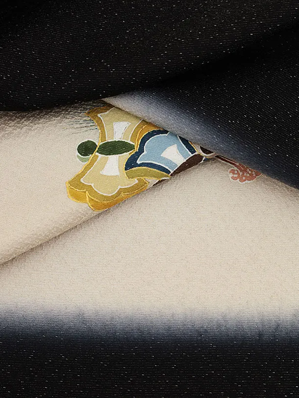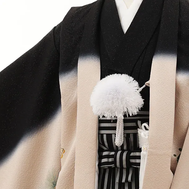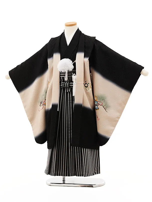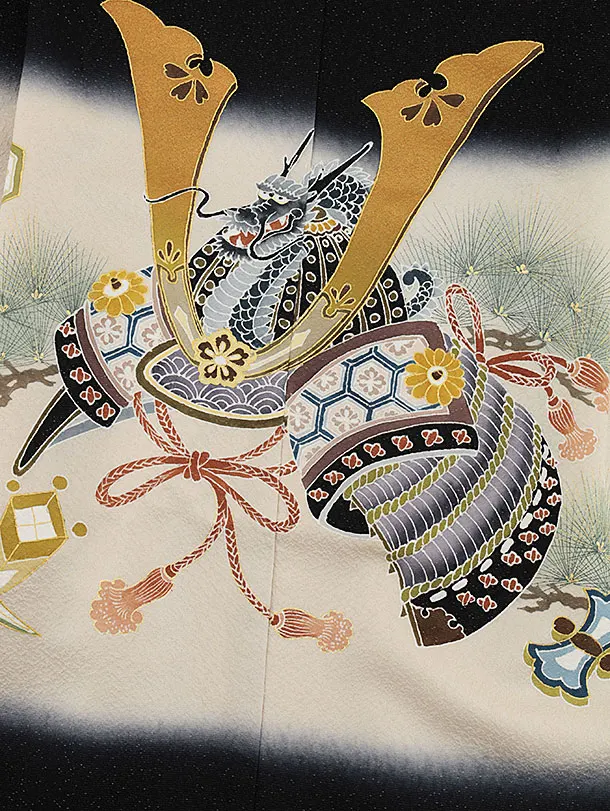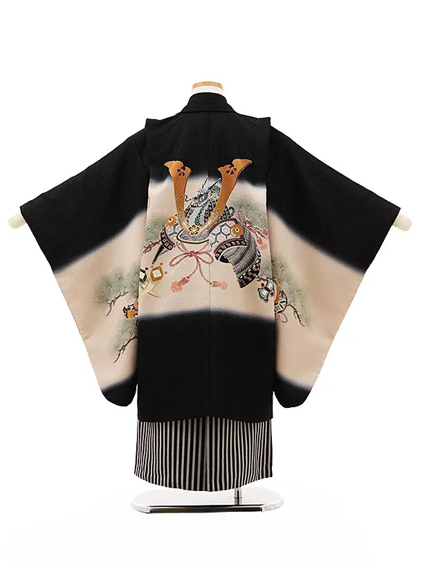 七五三(5歳男袴)X560【高級正絹】黒地ラメ兜と吉祥文様×黒縞