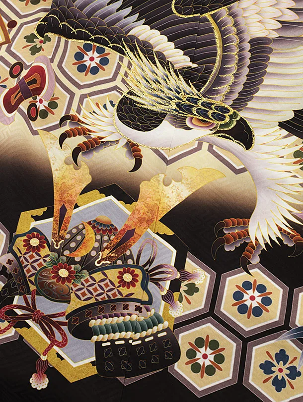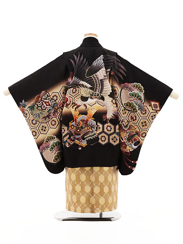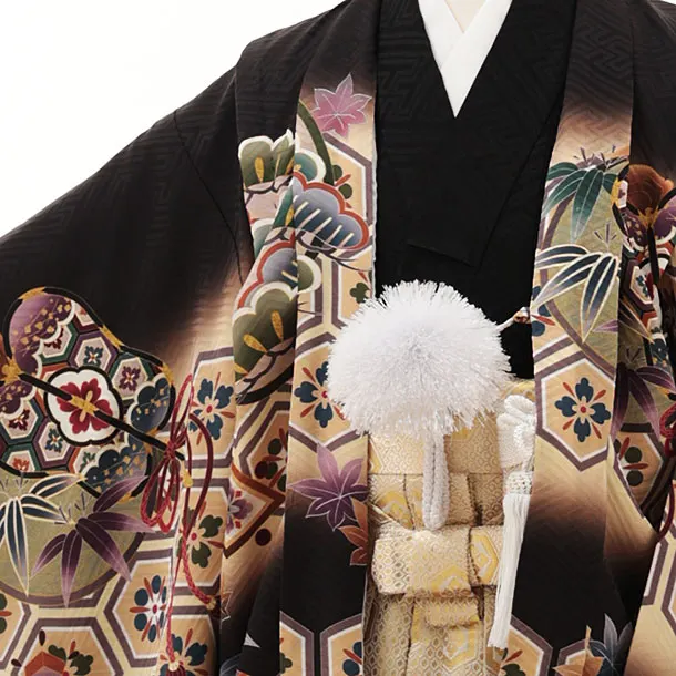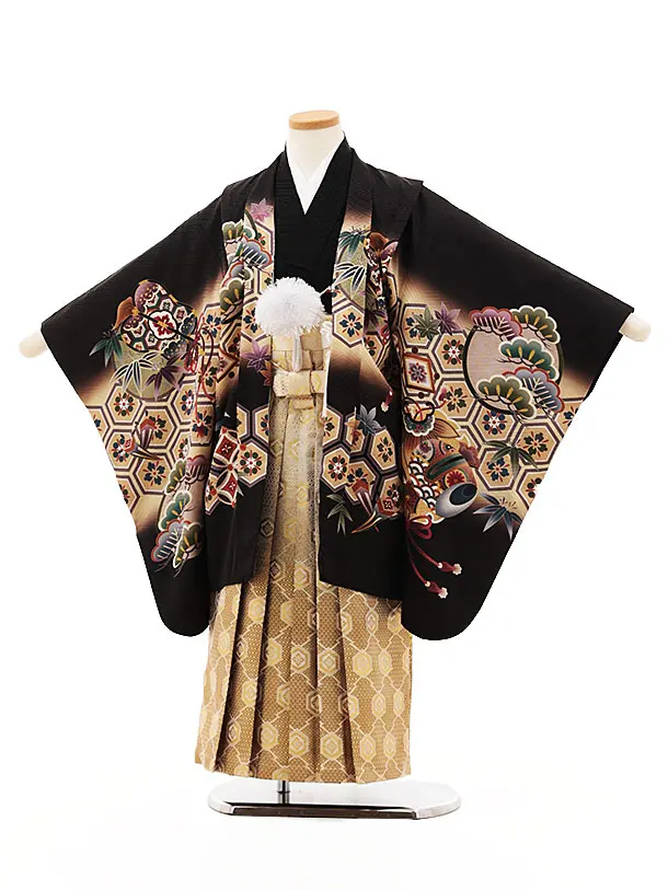 七五三(5歳男袴)X562【正絹】こげ茶亀甲鷹吉祥文様×キャメルぼかし