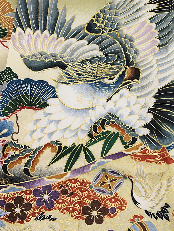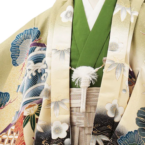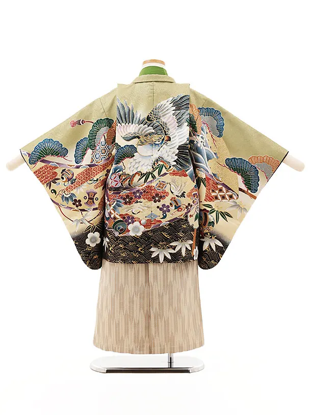 かんたん七五三(5歳男袴)X583 おりびと 薄グリーン吉祥文様鷹×ベージュ