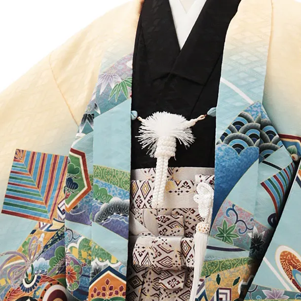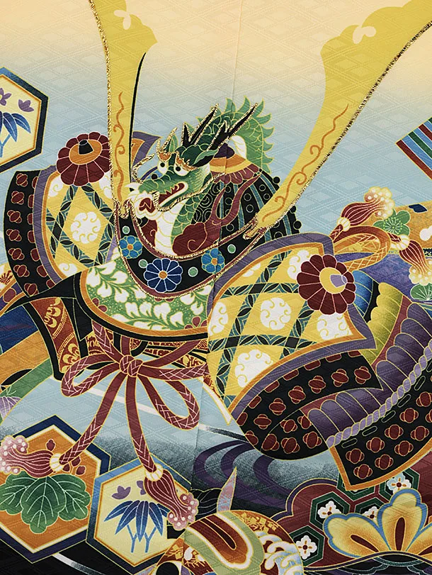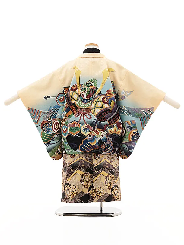 七五三(4.5歳男袴)X588 たまご色 兜×白金ぼかし