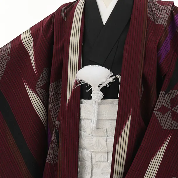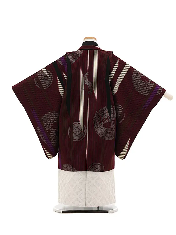 かんたん七五三(5歳男袴)X603 九重 ボルドー かすり丸紋×白銀