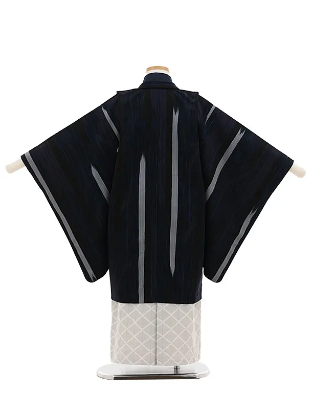 かんたん七五三(5歳男袴)X606 九重 濃紺 矢柄縞×白銀
