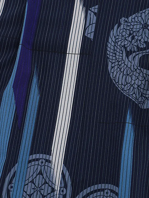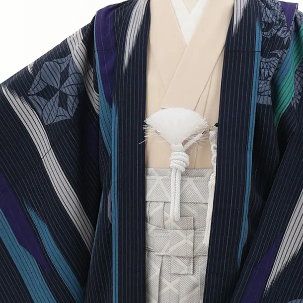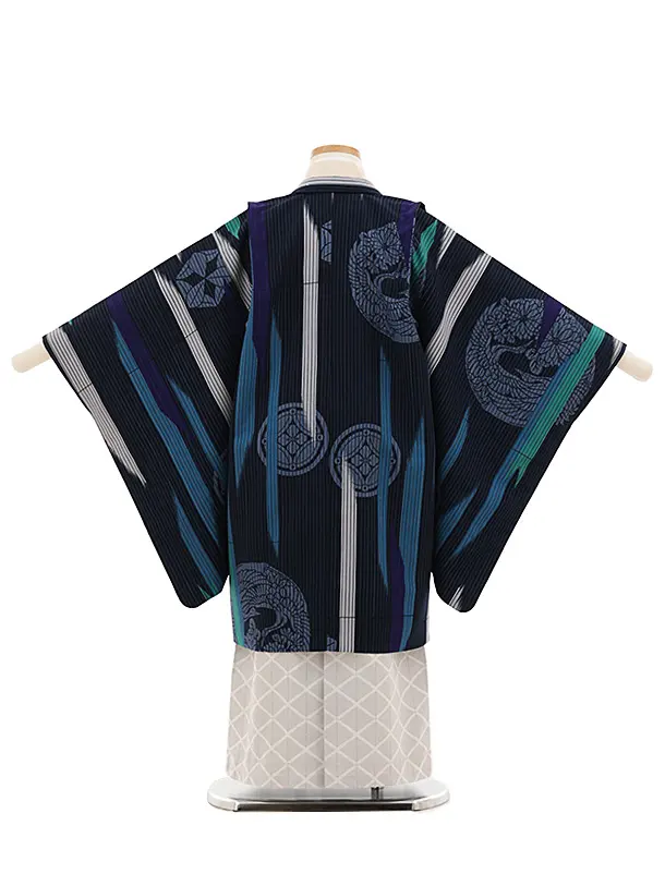 かんたん七五三(5歳男袴)X608 九重 紺 かすり丸紋×白銀