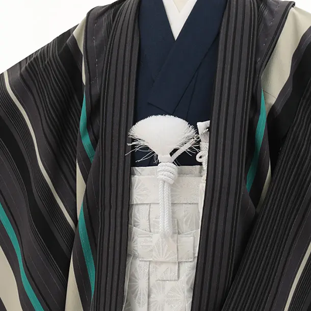 かんたん七五三(5歳男袴)X610 九重 グレーブルーストライプ×白銀