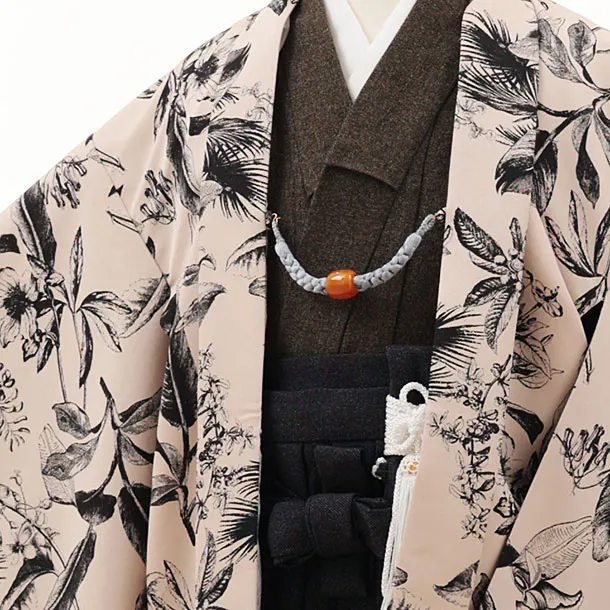 かんたん(5歳男袴)X618 ラフィネココ ベージュボタニカル×ネイビーデニム調