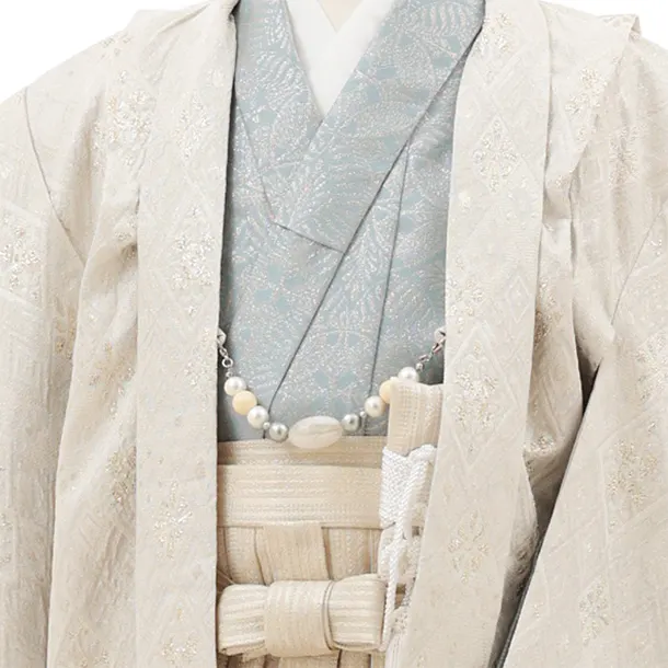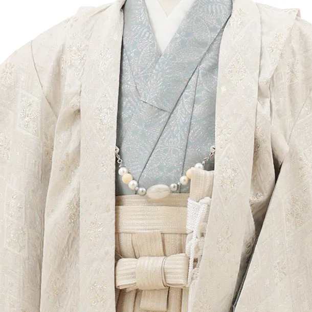 七五三レンタル(5歳男袴)X630 ぷちぷり 白ゴールド ダイヤ柄×ゴールド
