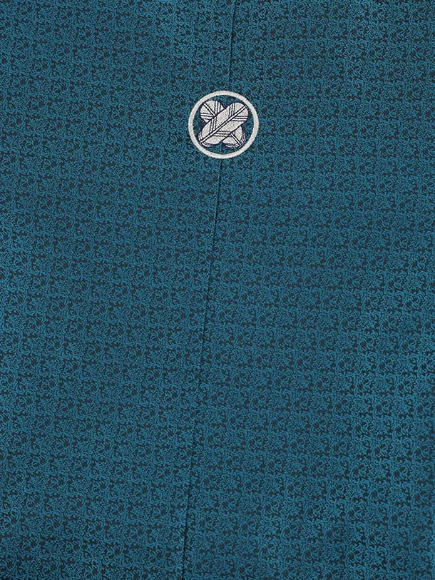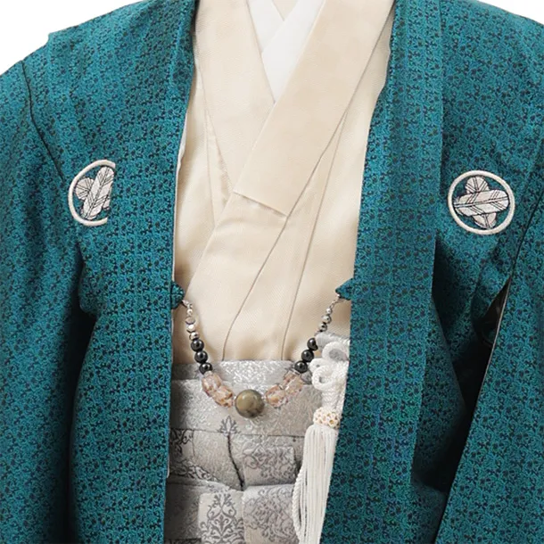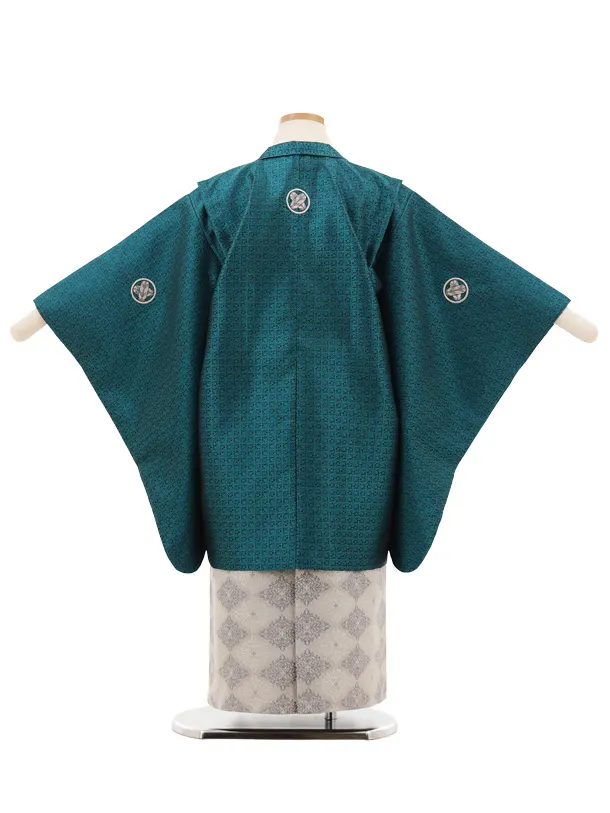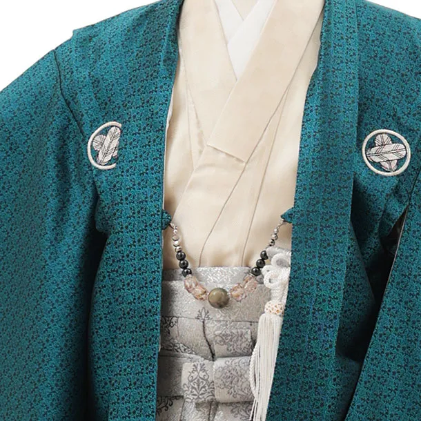七五三レンタル(5歳男袴)X635 花わらべ エメラルドグリーン 紋付×グレー