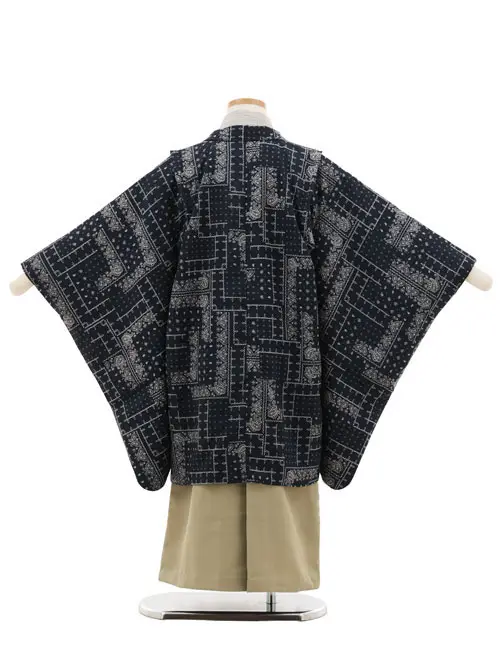 七五三レンタル(5歳男袴)X637 花わらべ ネイビーペイズリー×モカベージュ