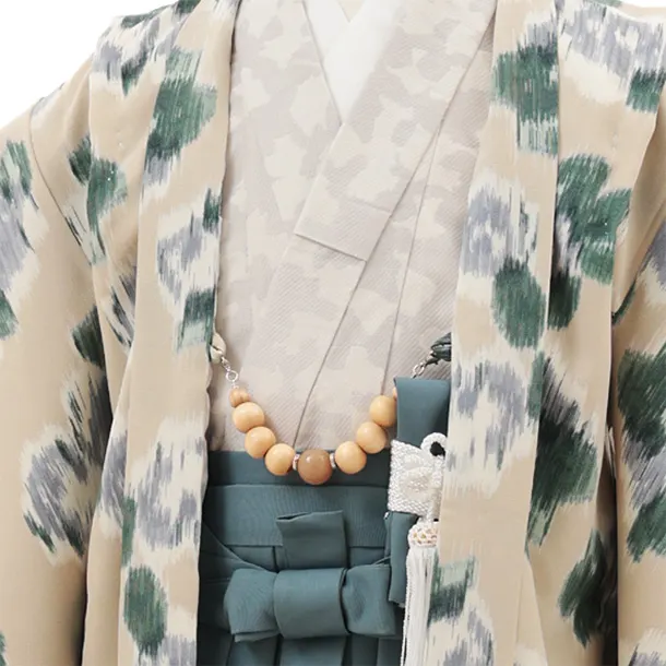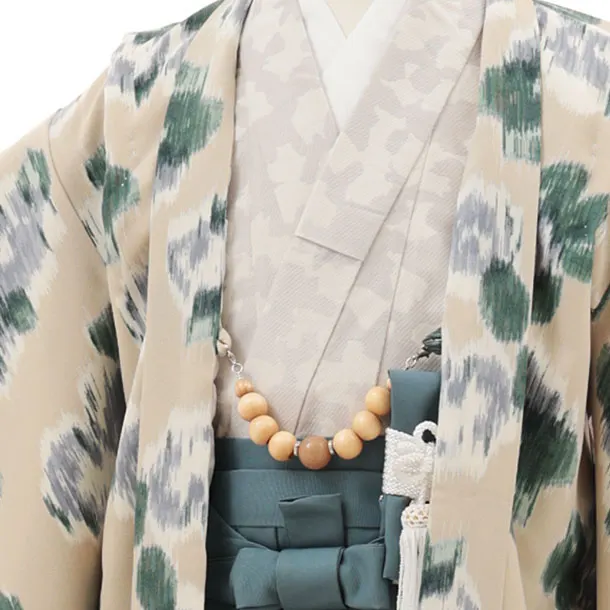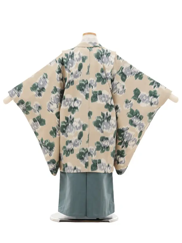 七五三レンタル(5歳男袴)X641 花わらべ ベージュ花×ブルーグレー