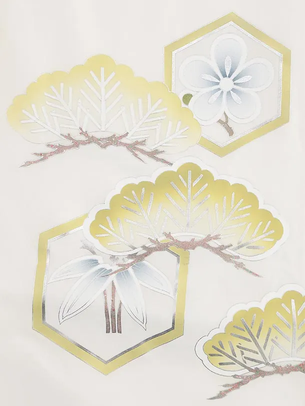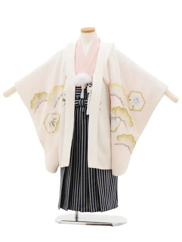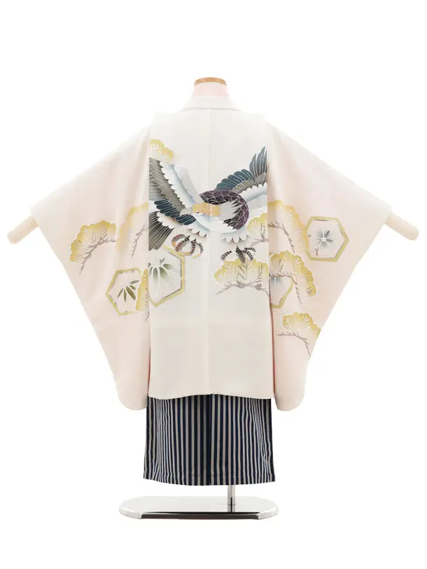 七五三(5歳男袴)X644【正絹】白地 松亀甲紋鷹×紺縞