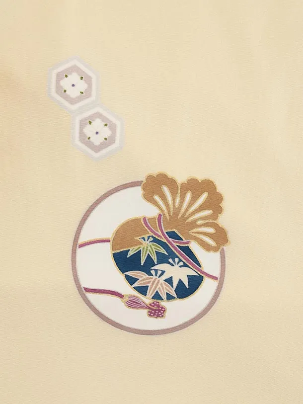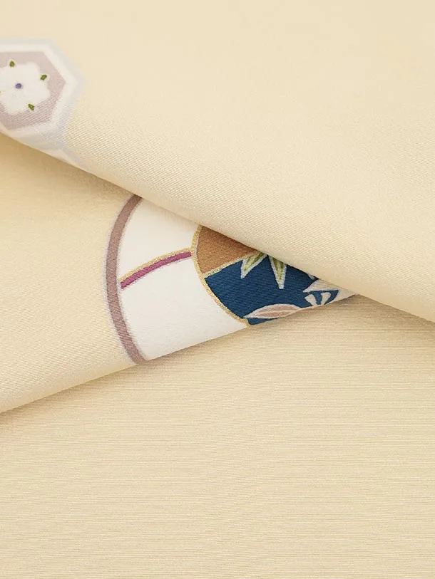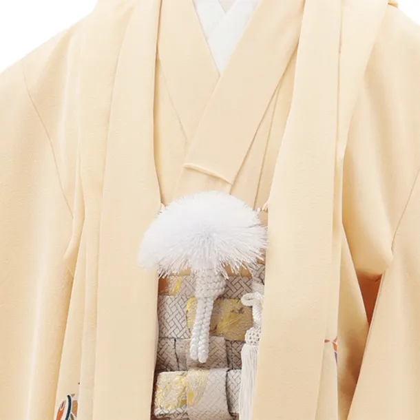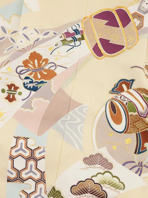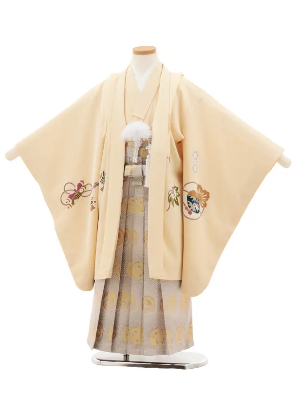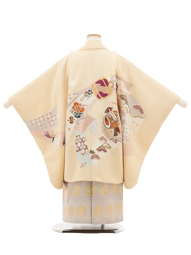 七五三(5歳男袴)X646【正絹】クリーム地 束ね熨斗 吉祥文様×ゴールド丸紋