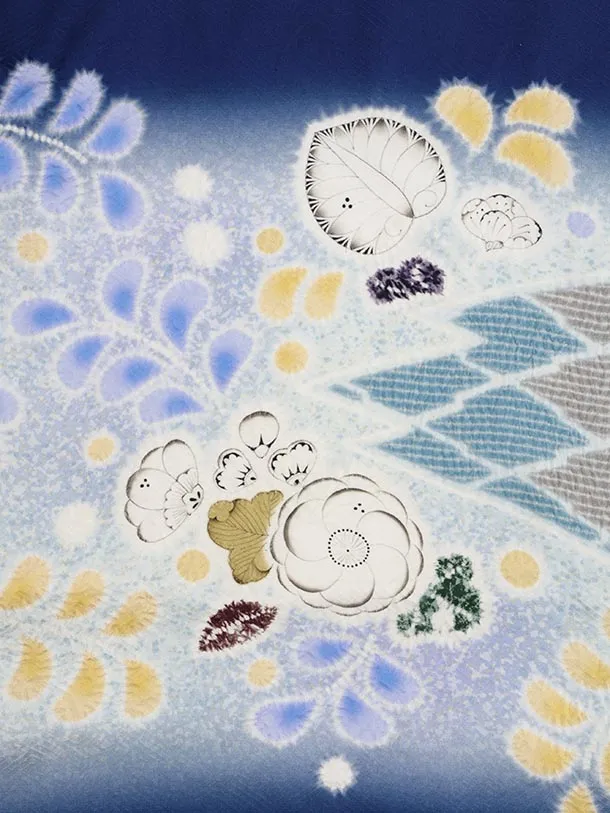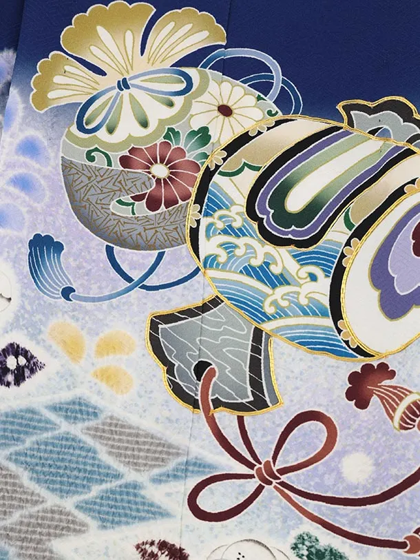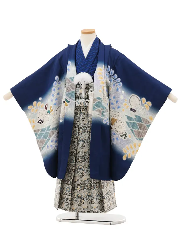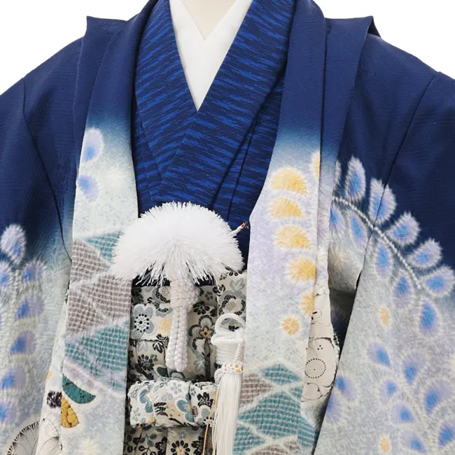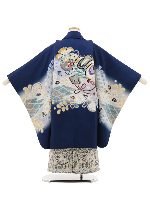七五三(5歳男袴)X654【正絹】ブルー辻が花 小槌×ベージュ梅