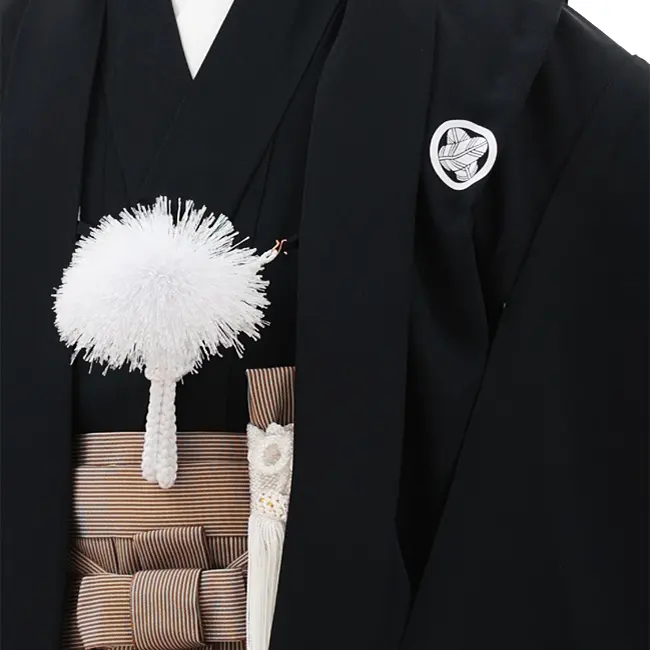 七五三(5歳男袴)X660【正絹】黒紋付×茶細縞
