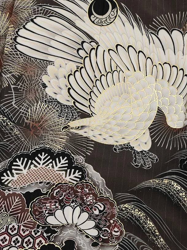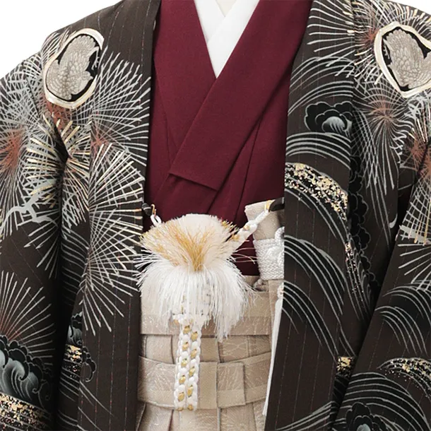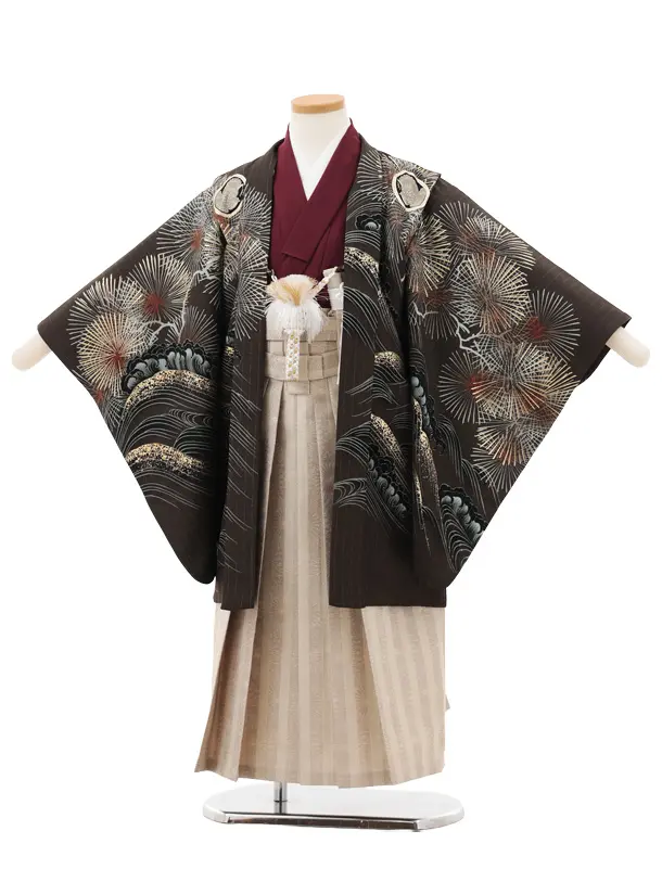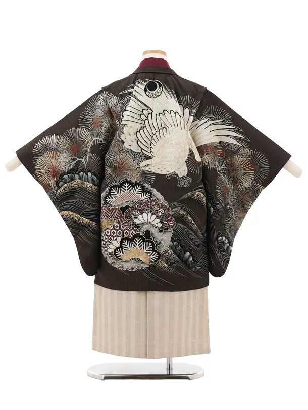 かんたん七五三(5歳男袴)X670 京舞 ブラウン松丸紋に鷹×ベージュストライプ
