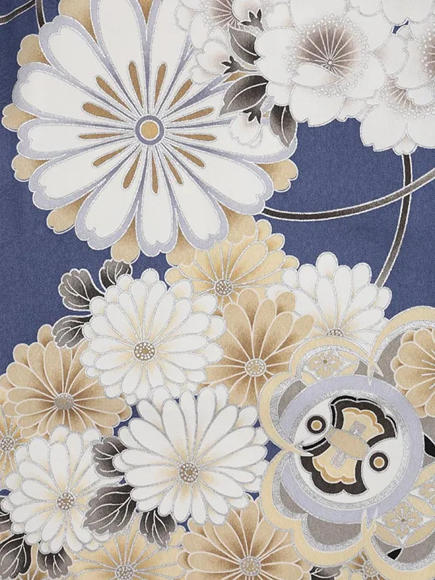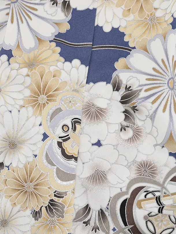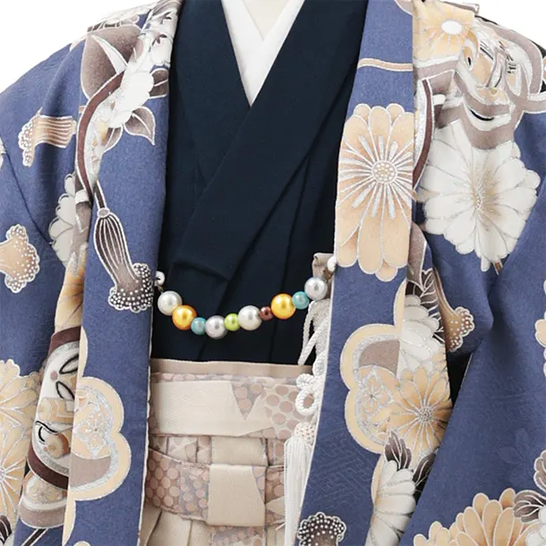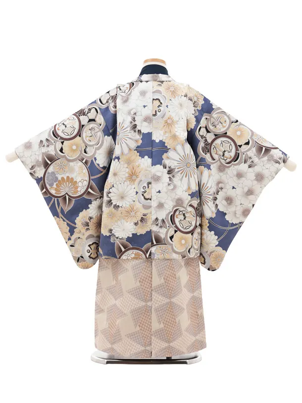 かんたん七五三(5歳男袴)X673 ブルー 橘桜×ベージュ