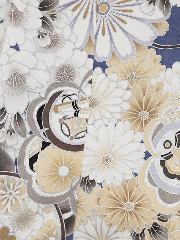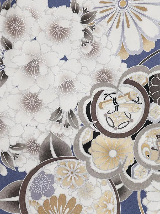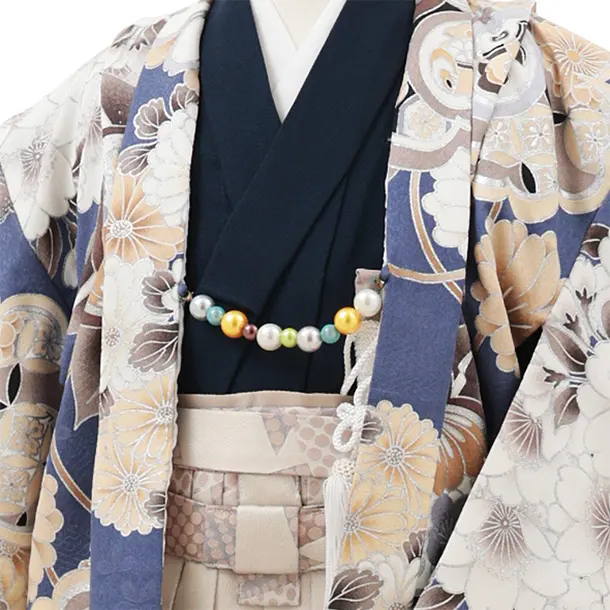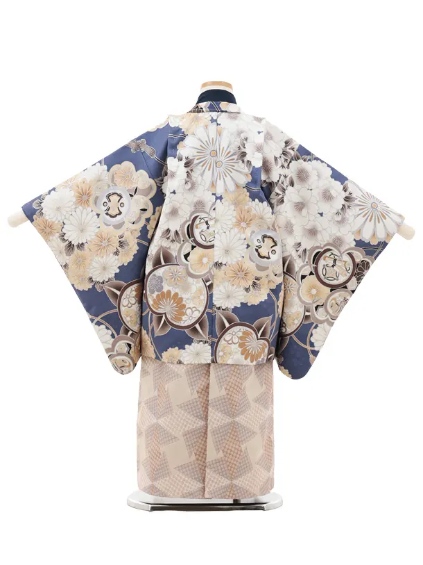 かんたん七五三(5歳男袴)X675 ブルー橘桜×ベージュ