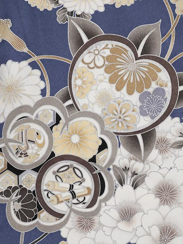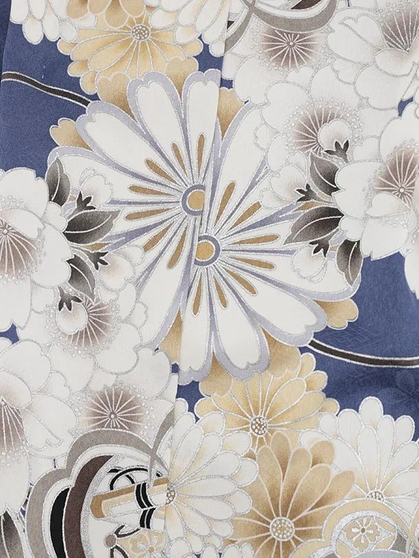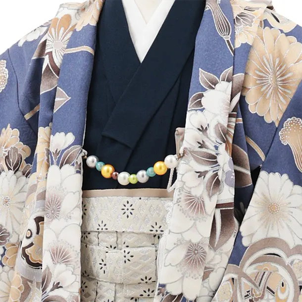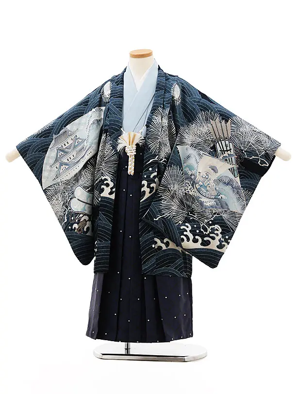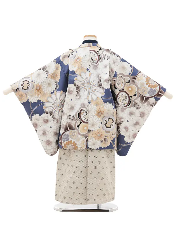 かんたん七五三(5歳男袴)X677 ブルー橘桜×アイボリー