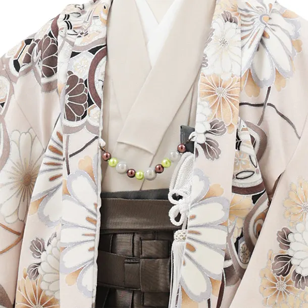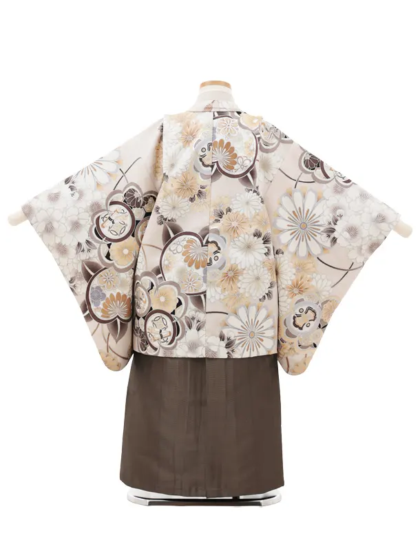 かんたん七五三(5歳男袴)X681 ベージュ橘桜×カーキ