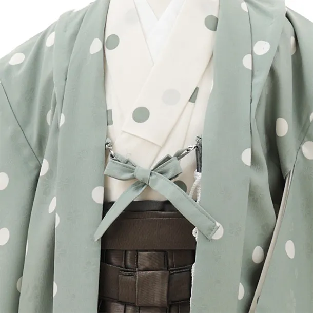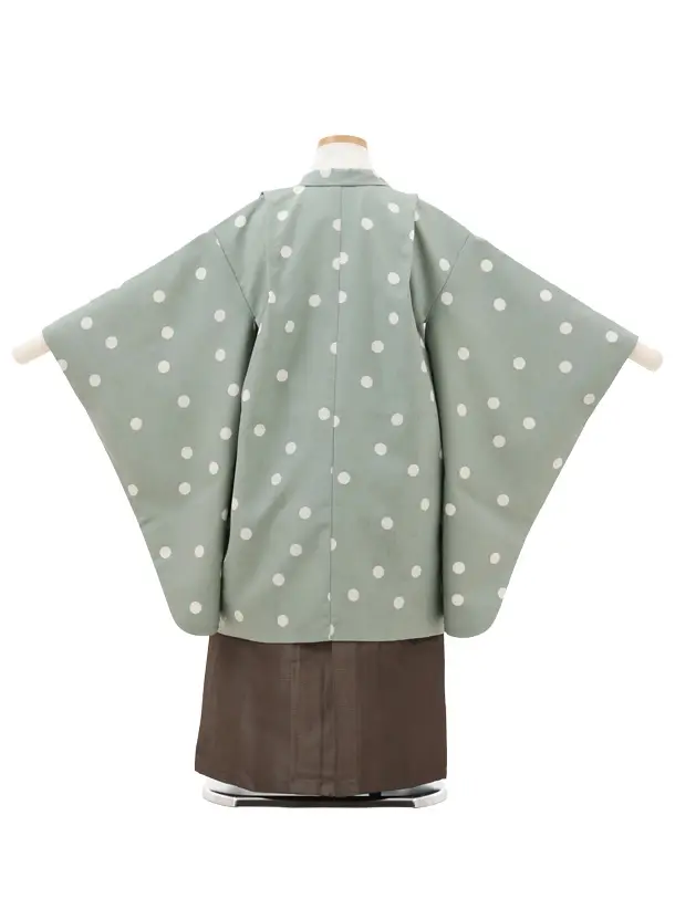 かんたん七五三(5歳男袴)X685 ペールグリーンドット×カーキ