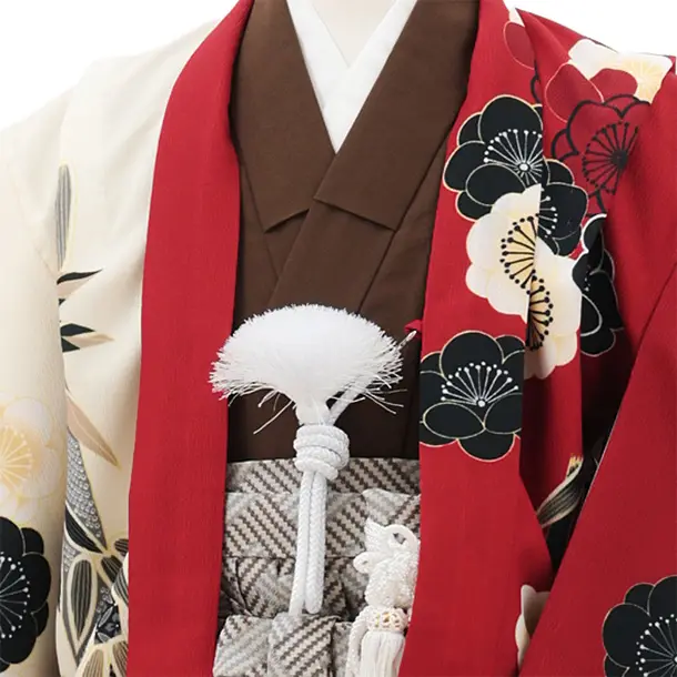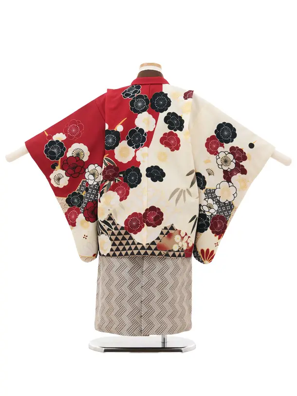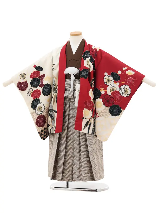 七五三レンタル(5歳男袴)X691 赤クリーム梅×ベージュ