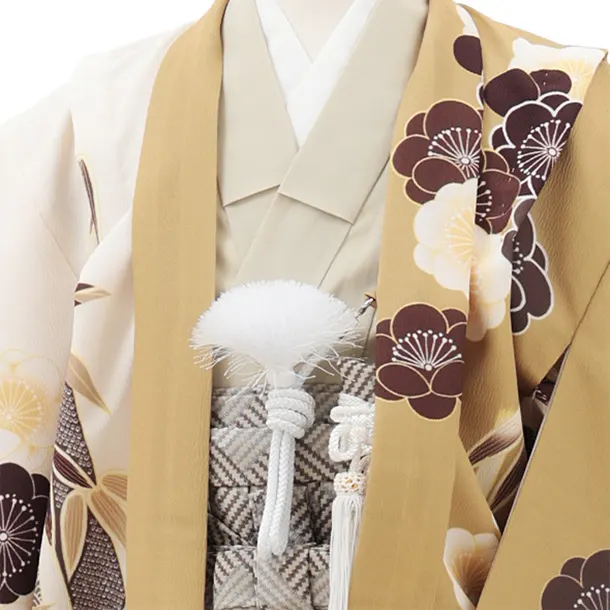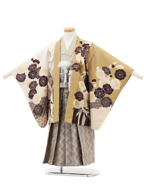 七五三レンタル(5歳男袴)X692 からしクリーム梅×ベージュ