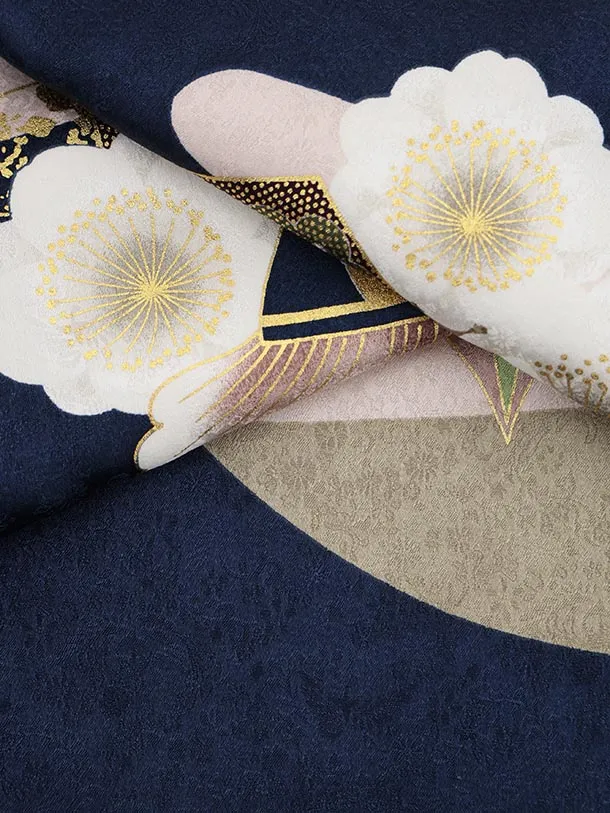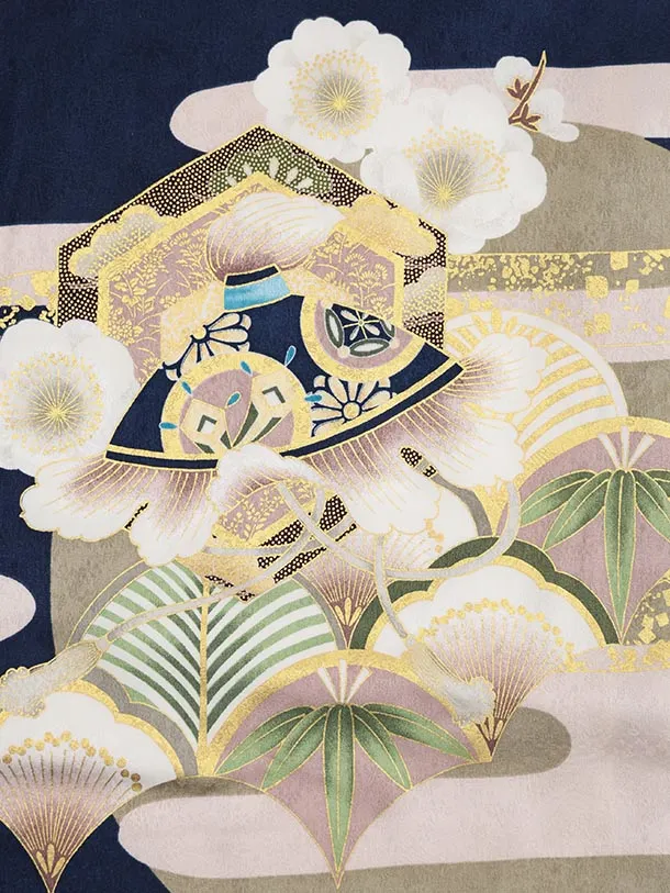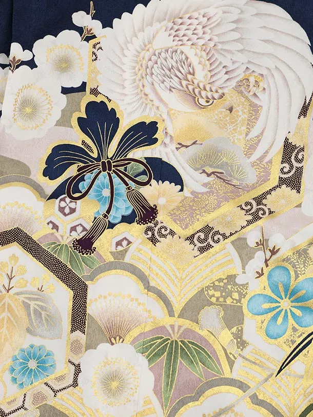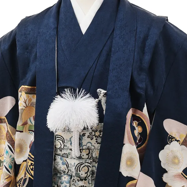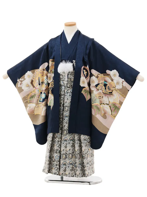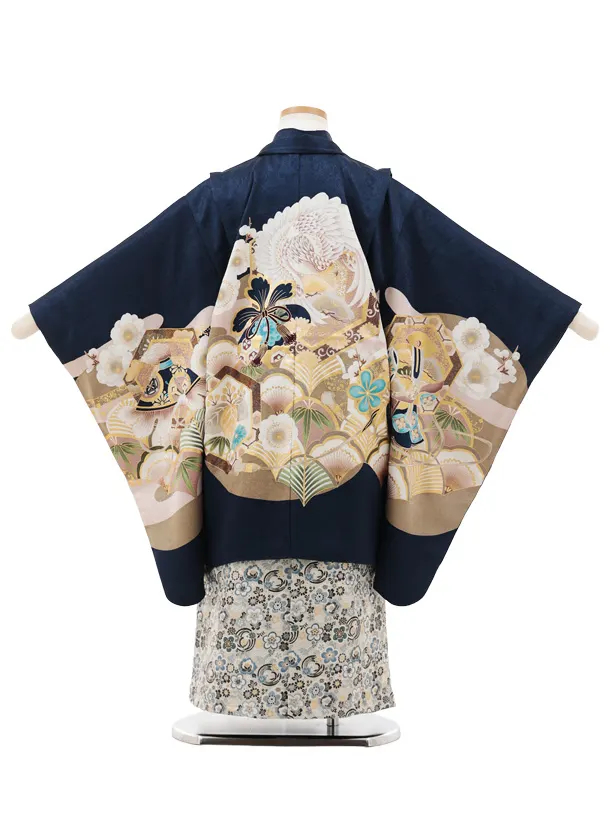 かんたん七五三(5歳男袴)X707【正絹】 紺地 吉祥文様 白鷹×ベージュ梅