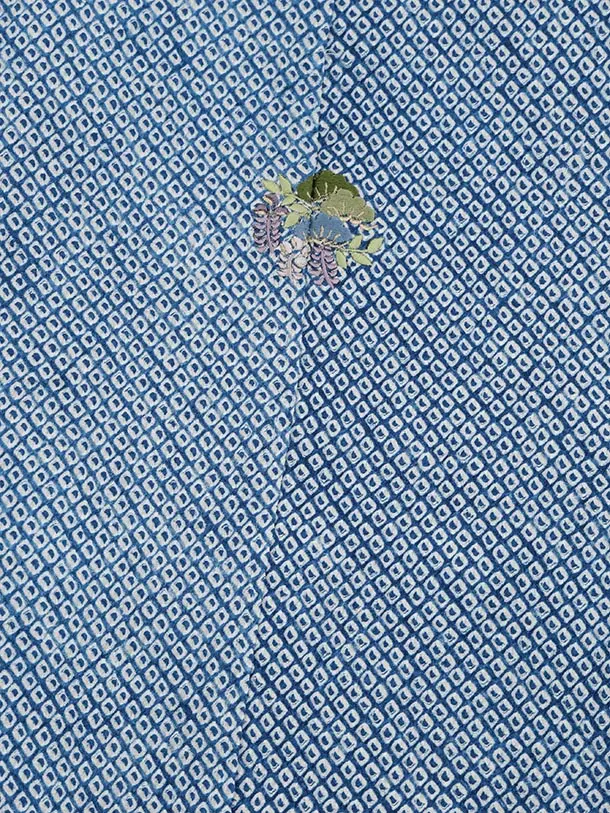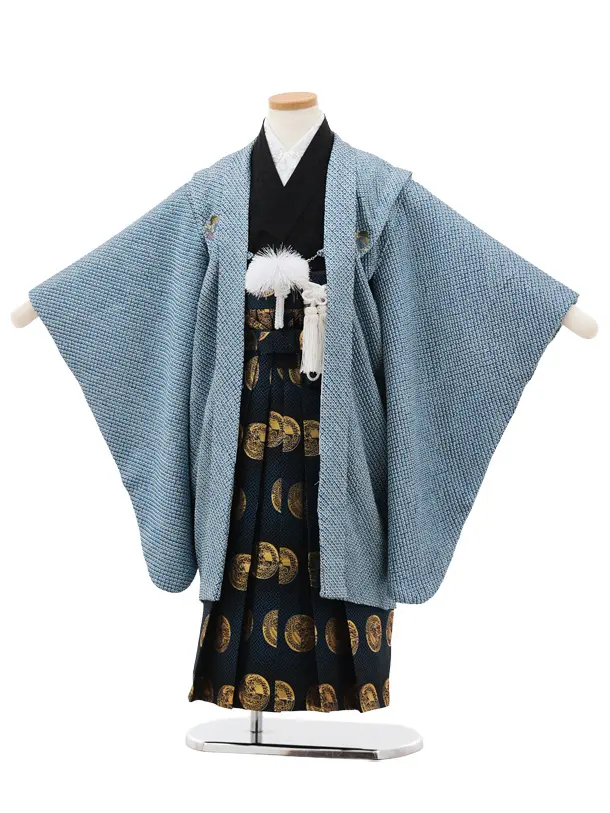 七五三(5歳男袴)X709【高級正絹】ブルー地 絞り 刺繍紋×紺丸紋