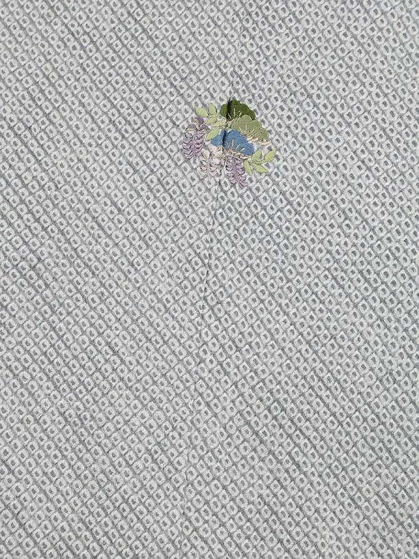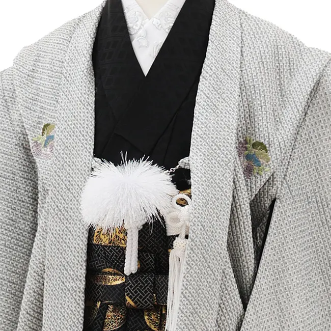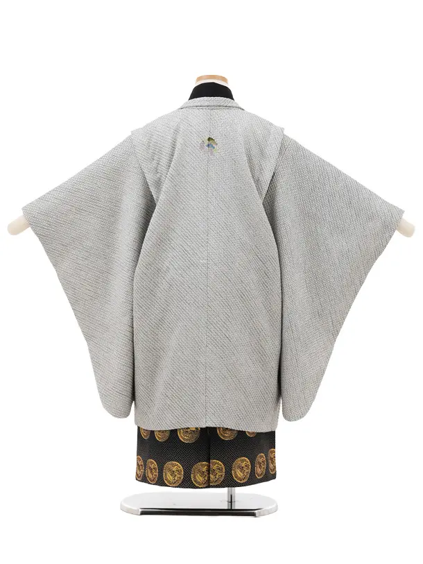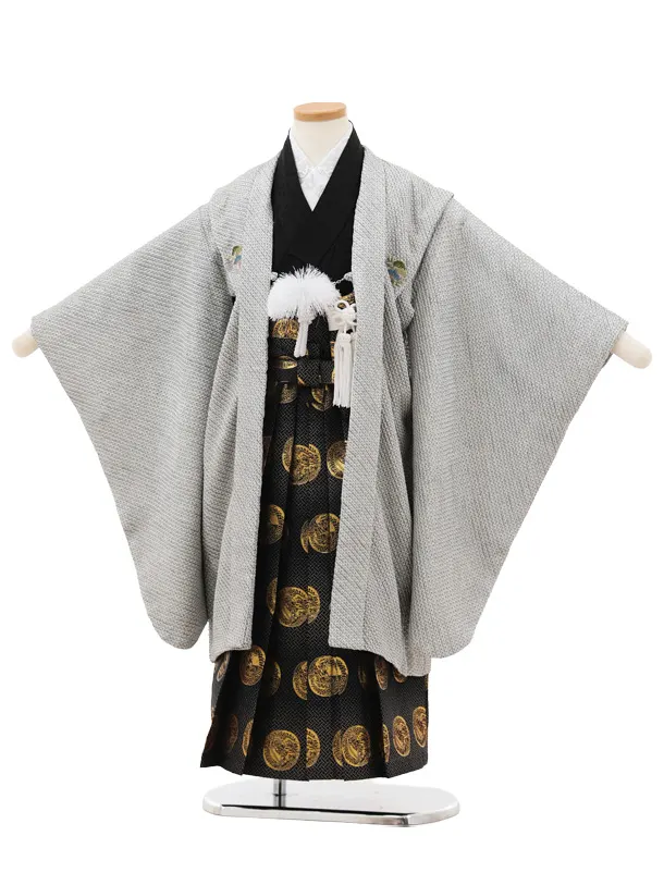 七五三(5歳男袴)X710【高級正絹】薄グレー地 絞り刺繍紋×黒丸紋