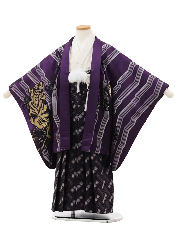 かんたん七五三(5歳男袴)X738 紫地 縞に虎×紫