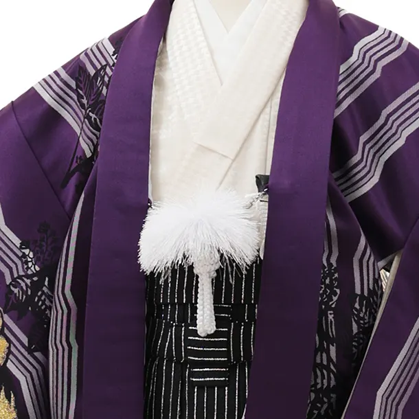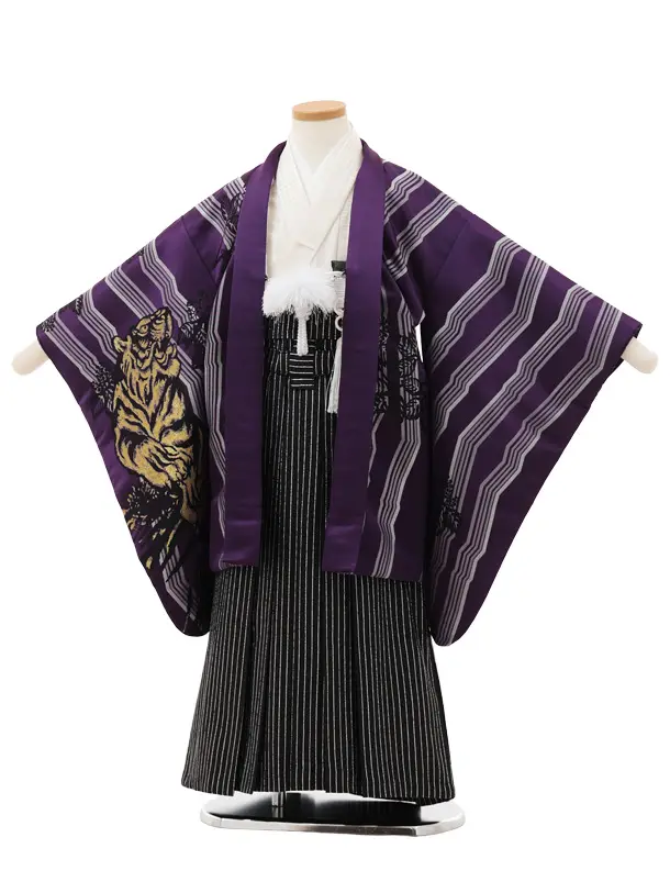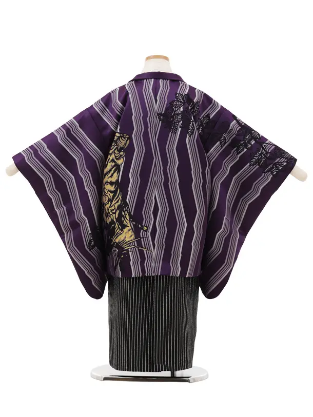 かんたん七五三(5歳男袴)X739 紫地 縞に虎×黒シルバー縞