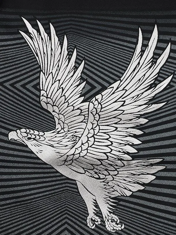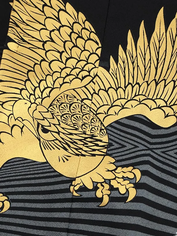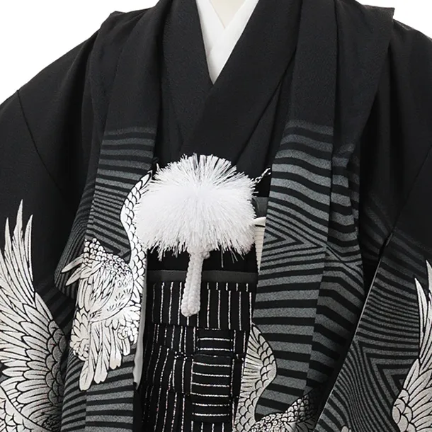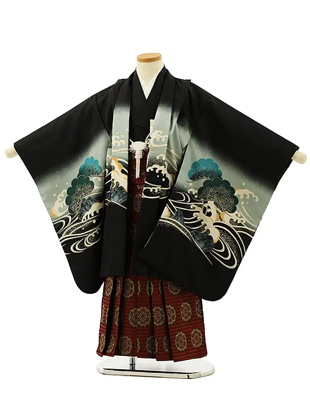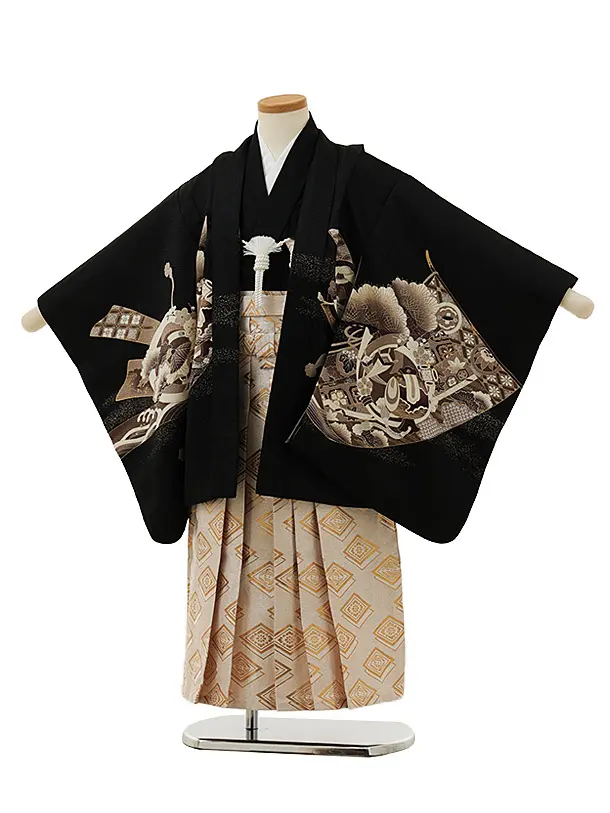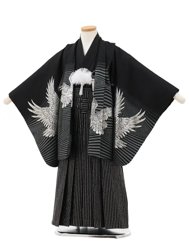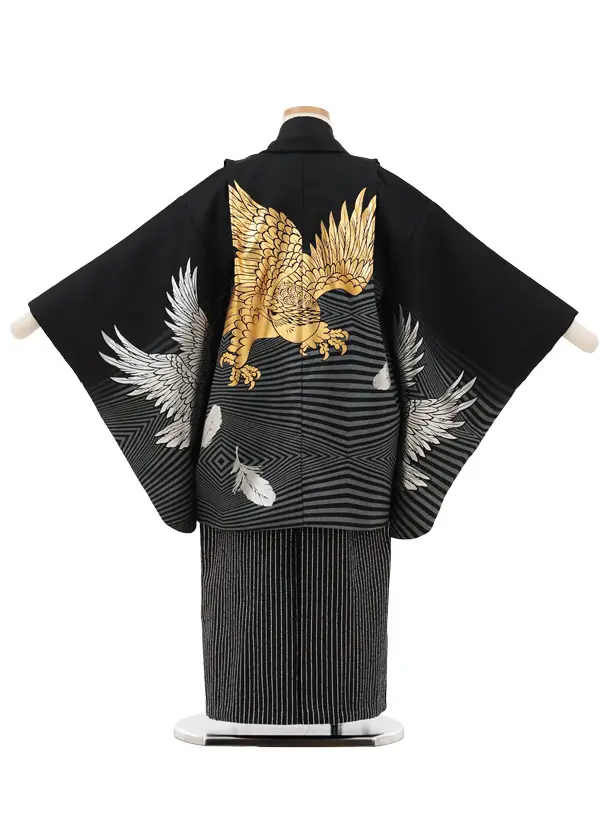 かんたん七五三(5歳男袴)X744 黒シルバーゴールド鷹×黒シルバー縞