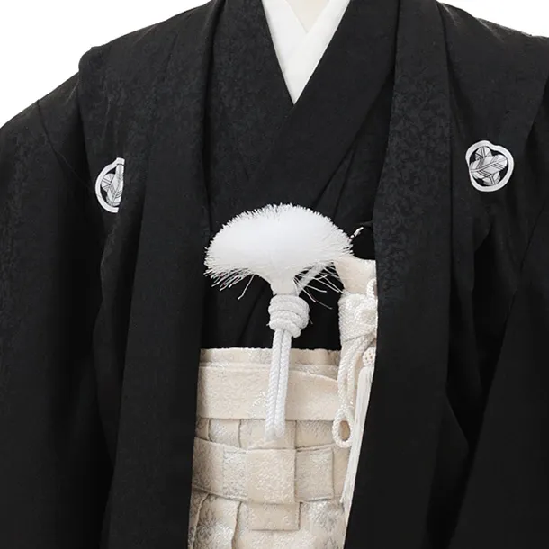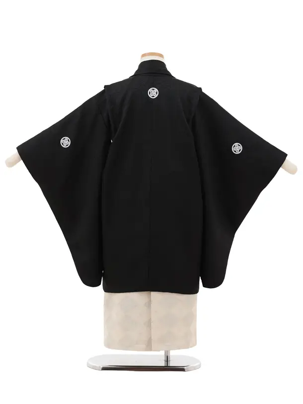 かんたん七五三(5歳男袴)X758 黒紋付×ベージュシルバー菱