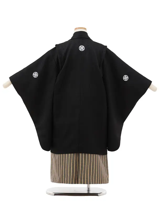 かんたん七五三(5歳男袴)X761 黒紋付×ゴールドぼかし縞