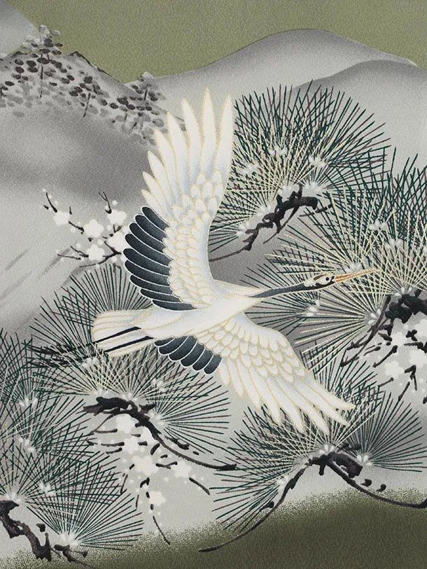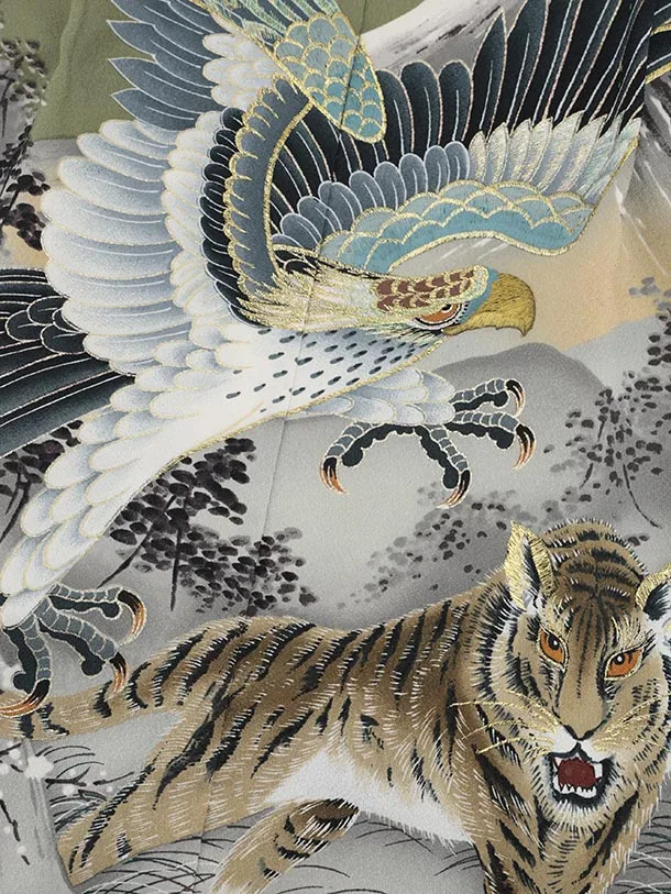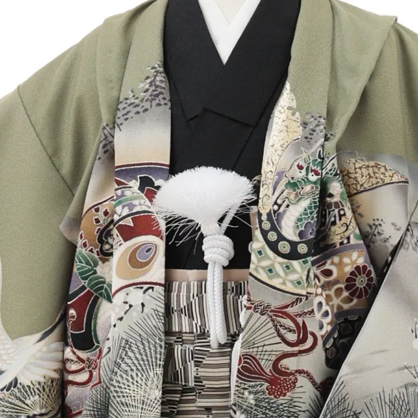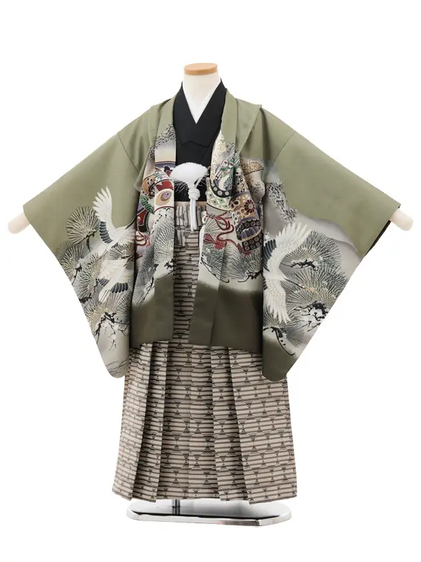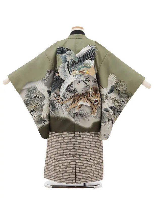 かんたん七五三(5歳男袴)X767 グリーン鷹に虎×ベージュ黒