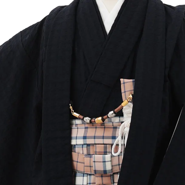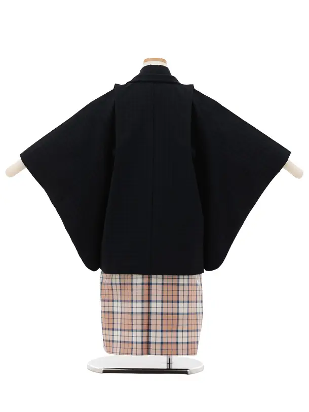 かんたん七五三(5歳男袴)X774 濃紺×ピンクベージュチェック