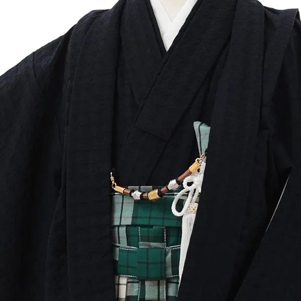 かんたん七五三(5歳男袴)X776 濃紺×グリーンチェック