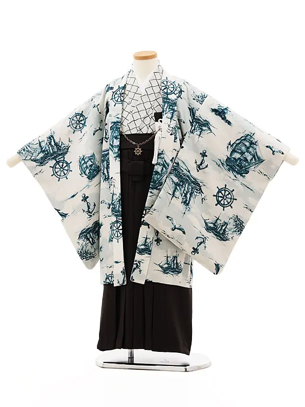 かんたん七五三(5歳男袴)X781 ブルーグレー×ベージュ