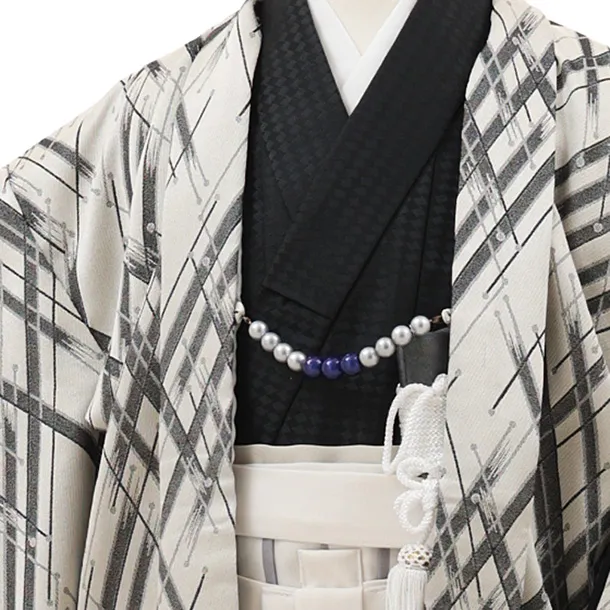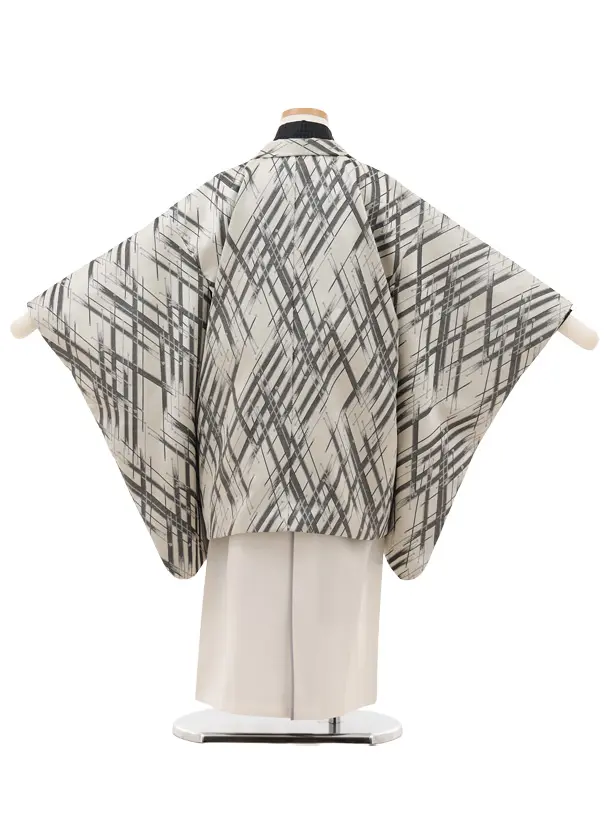 かんたん七五三(5歳男袴)X796 ベージュ変わりチェック×アイボリー