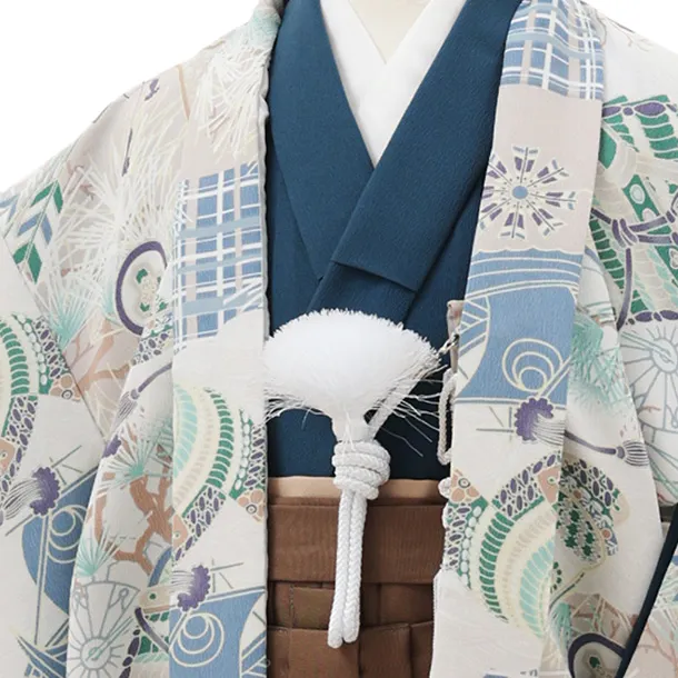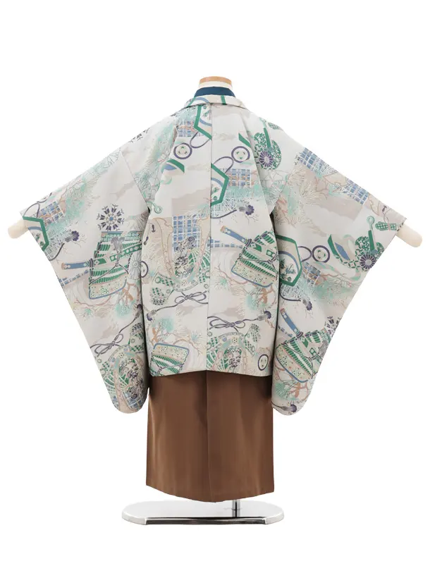かんたん七五三(5歳男袴)X797 ベージュ武具文×モカブラウン